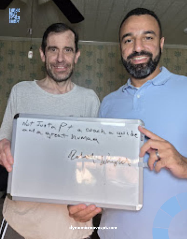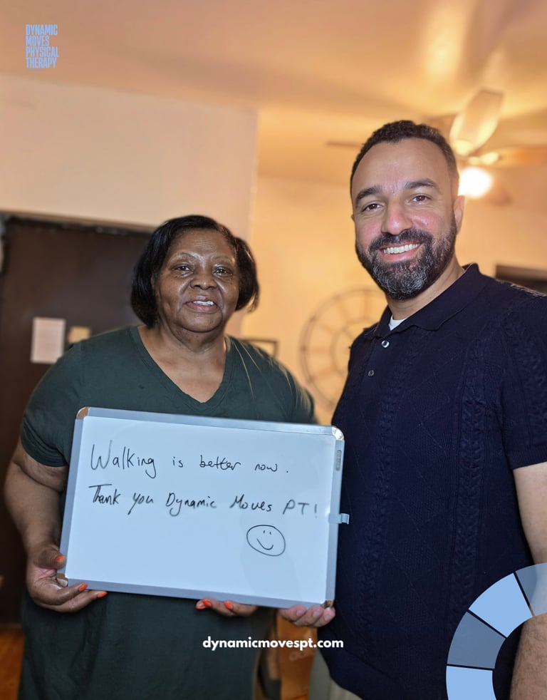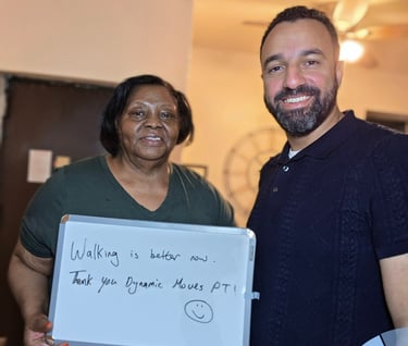 We created Dynamic Moves Physical Therapy to move away from rushed, overcrowded clinics, offering home care for your comfort and privacy and provide focused, evidence-based care that treats the whole person not just the injury.